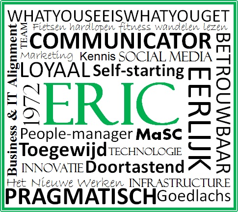 Ik ben Eric, een technologie professional in hart en nieren. Een gepassioneerde vakidioot met sterke interesse in innovatie, verbeteringen, cloud, zelfs Marketing, kortom: alles wat raakvlakken heeft met het verbinden van mensen, processen en technologie.